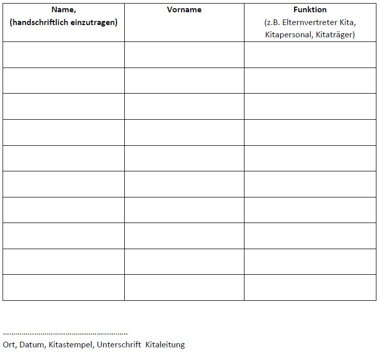 Von der Kindertagesstättenleitung auszufüllen: