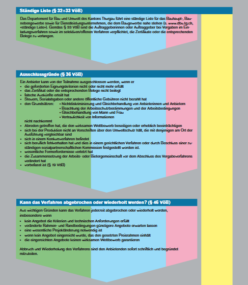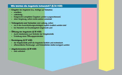 Das Bundesgesetz über das öffentliche Beschaffungswesen sieht folgende Vergabeverfahren vor: offenes/selektives Verfahren, Einladungsverfahren und freihändige Vergabe.